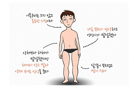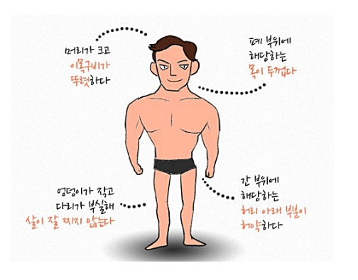 - 어깨가 발달했고 허리 부위는 약한 편임