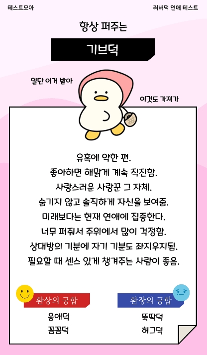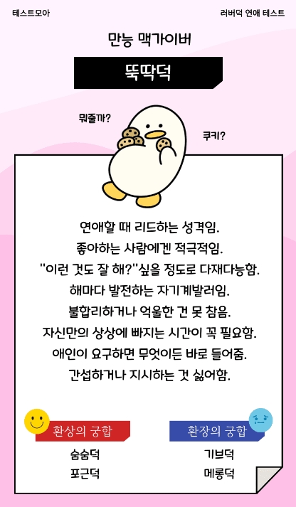 | 댄스덕 | ESFJ | 기브덕 | ESFJ |