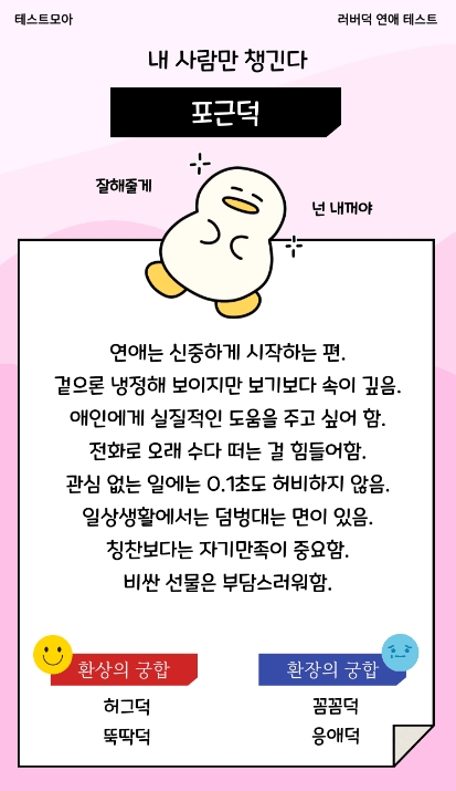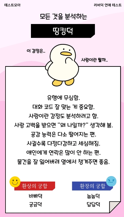 | 포근덕 | INTJ | 띵킹덕 | INTP |