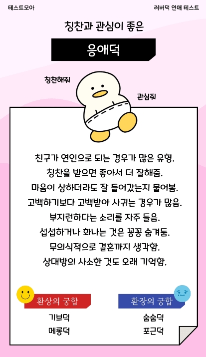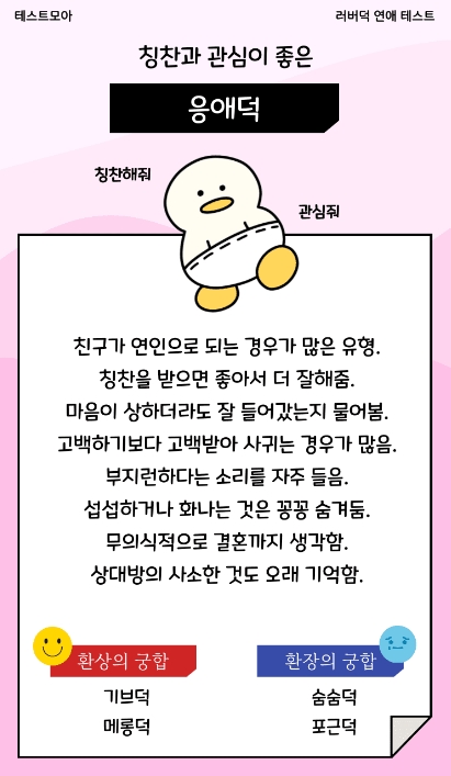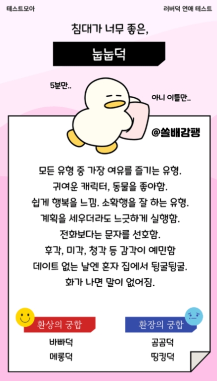 | 응애덕 | ISFJ | 눕눕덕 | ISFP |