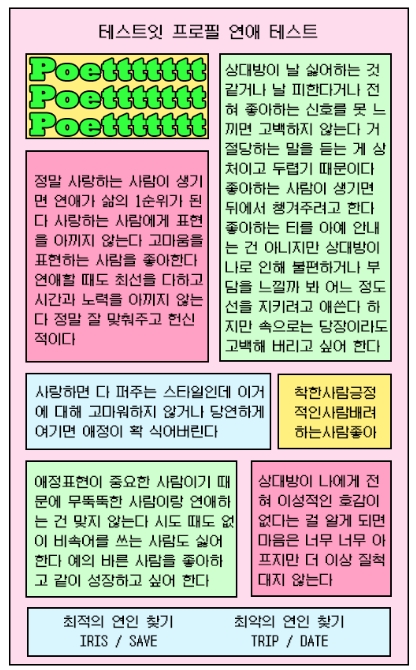 | 테스트잇 프로필 연애 테스트 결과 | MBTI 결과 |