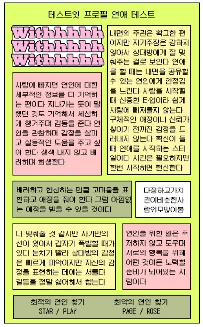 테스트잇 프로필 연애 테스트 결과는 아래와 같이 매칭이 됩니다.