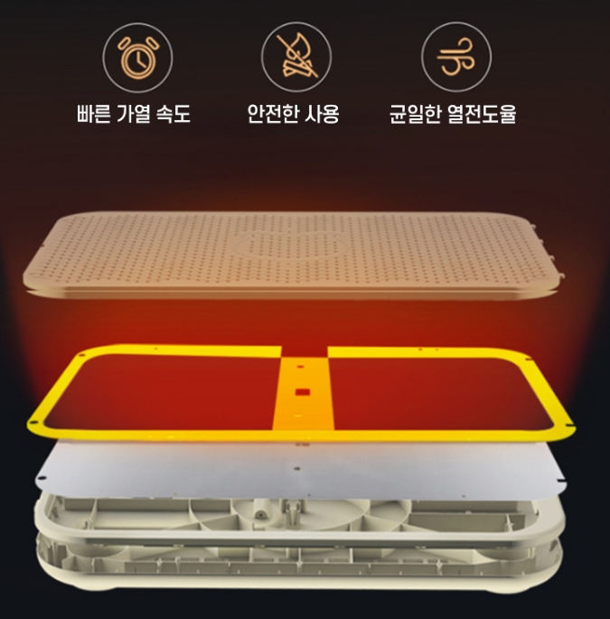 | 고효율 석영관램프 사용 | 무취,무소음,무연의 석영관 램프로 유해가스 없이 깨끗하고 안전하게 사용 가능합니다. |