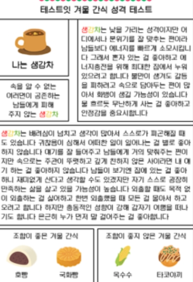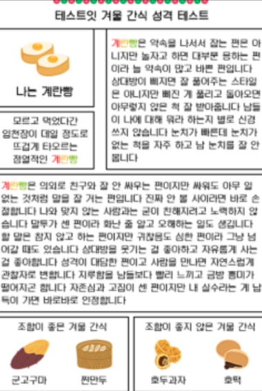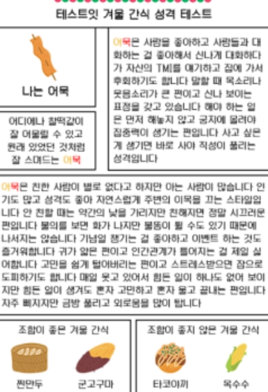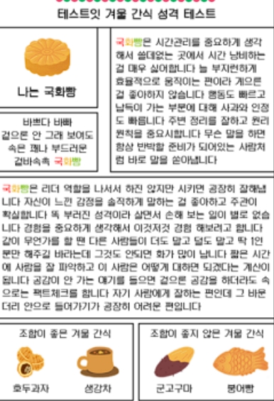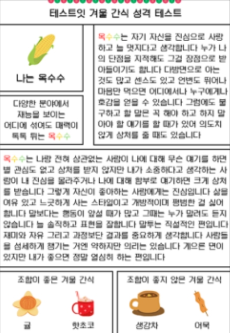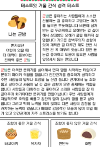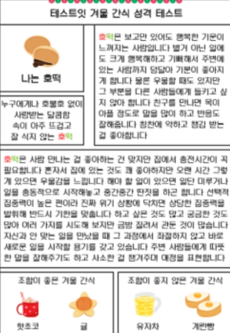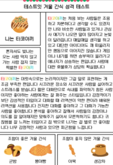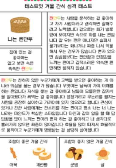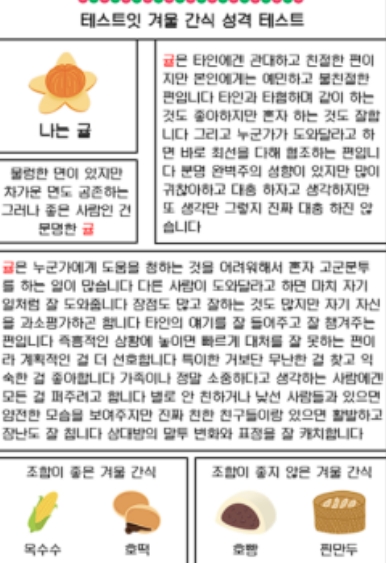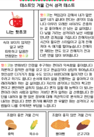 겨울간식으로 보는 성격 테스트(MBTI 유형별 결과 정리)