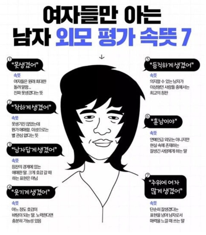 여자들만 아는 남자 외모 평가(속뜻) TOP7