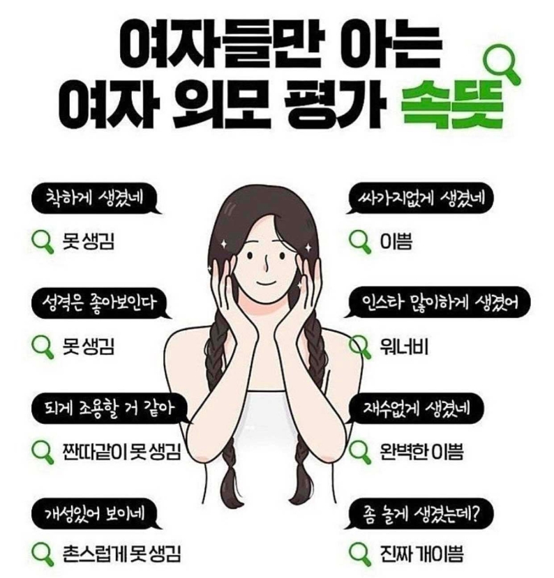 여자들만 알 수 있는 여자 외모 평가에 대해 그 속뜻을 알아보겠습니다.